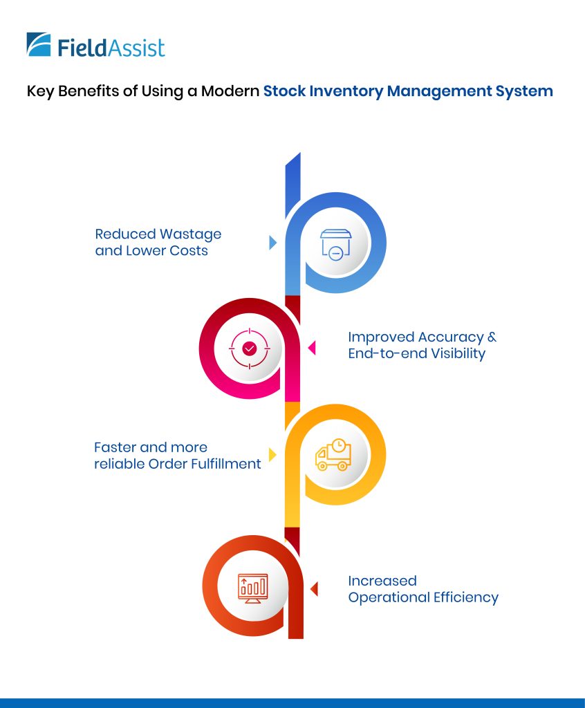 A modern stock inventory management system goes far beyond basic stock tracking. For FMCG and CPG businesses operating at scale, it becomes a critical lever for cost control, execution efficiency, and growth. Mentioned below are some of the most important benefits in practical terms.