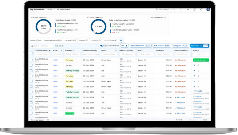 in North India, followed by a full-scale rollout across their distributor and field teams. Within just 2 months, the system was fully live, spanning 243 users on SFA and 72 on DMS.