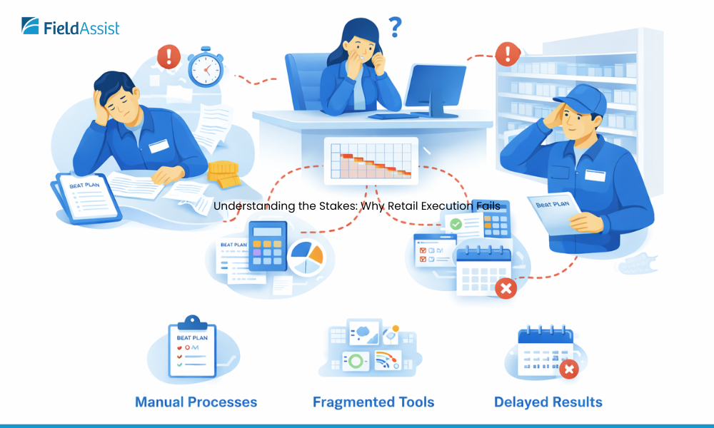 Retail execution doesn't fail because field reps don't care. It fails because the systems they rely on were never designed to handle the complexity of modern trade. Manual beat plans, paper-based data collection, and end-of-day call reports create a dangerous lag between what's happening on the ground and what leadership actually sees.