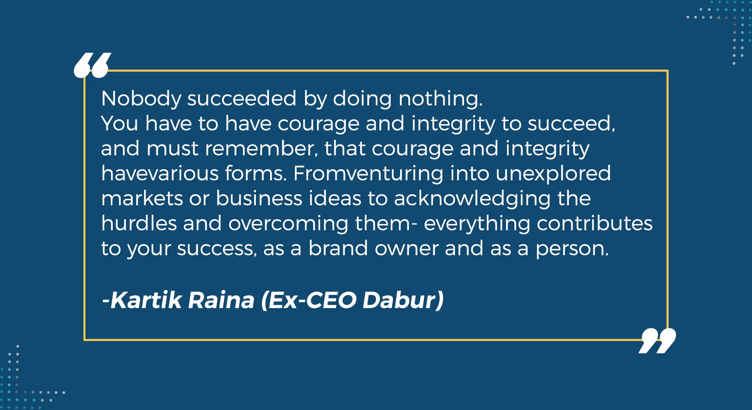 He further says that positivity and inner exploration are extremely critical to the growth of a person. Negativity corrodes you from inside and you can either make things happen, watch others making things happen, or simply wonder what happened!