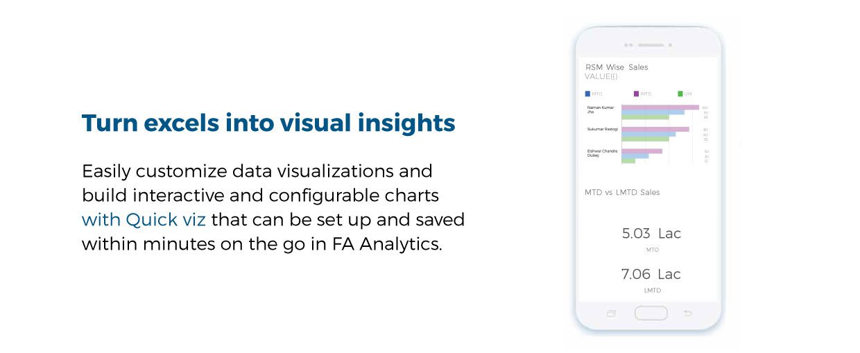 Now imagine getting this functionality and that too on the mobile! A comprehensive solution like FieldAssist’s Quick Viz offers managers a crisp, collated, graphical view of only those parameters that they wish to see. With easy-to-read charts available on the mobile anytime, anywhere, they can make real-time decisions in the field itself.