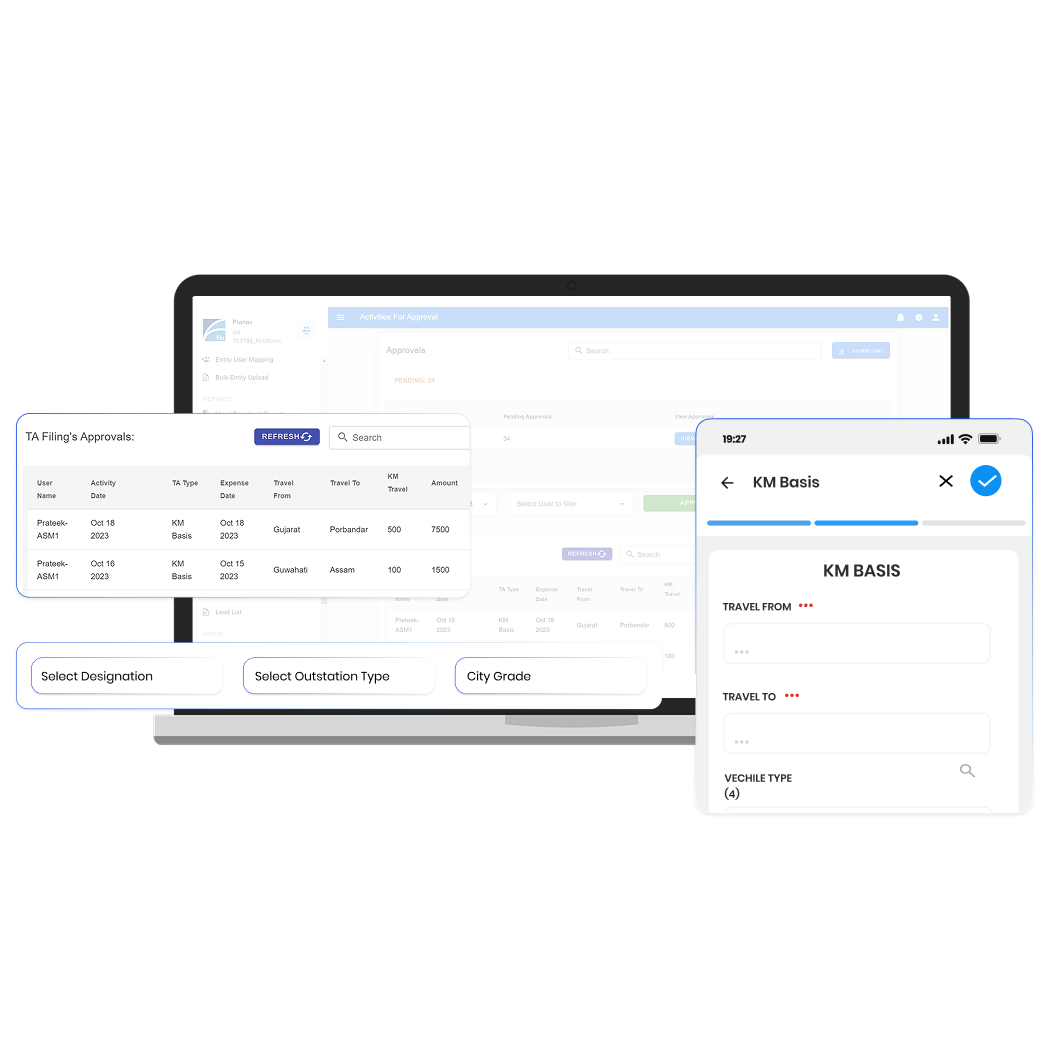 FieldAssist Travel and Expense Management Software simplifies every step of travel allowance and daily allowance tracking, i.e., from claim capture to policy checks, approvals, and reconciliation. Thus, giving finance control and employees faster payouts.